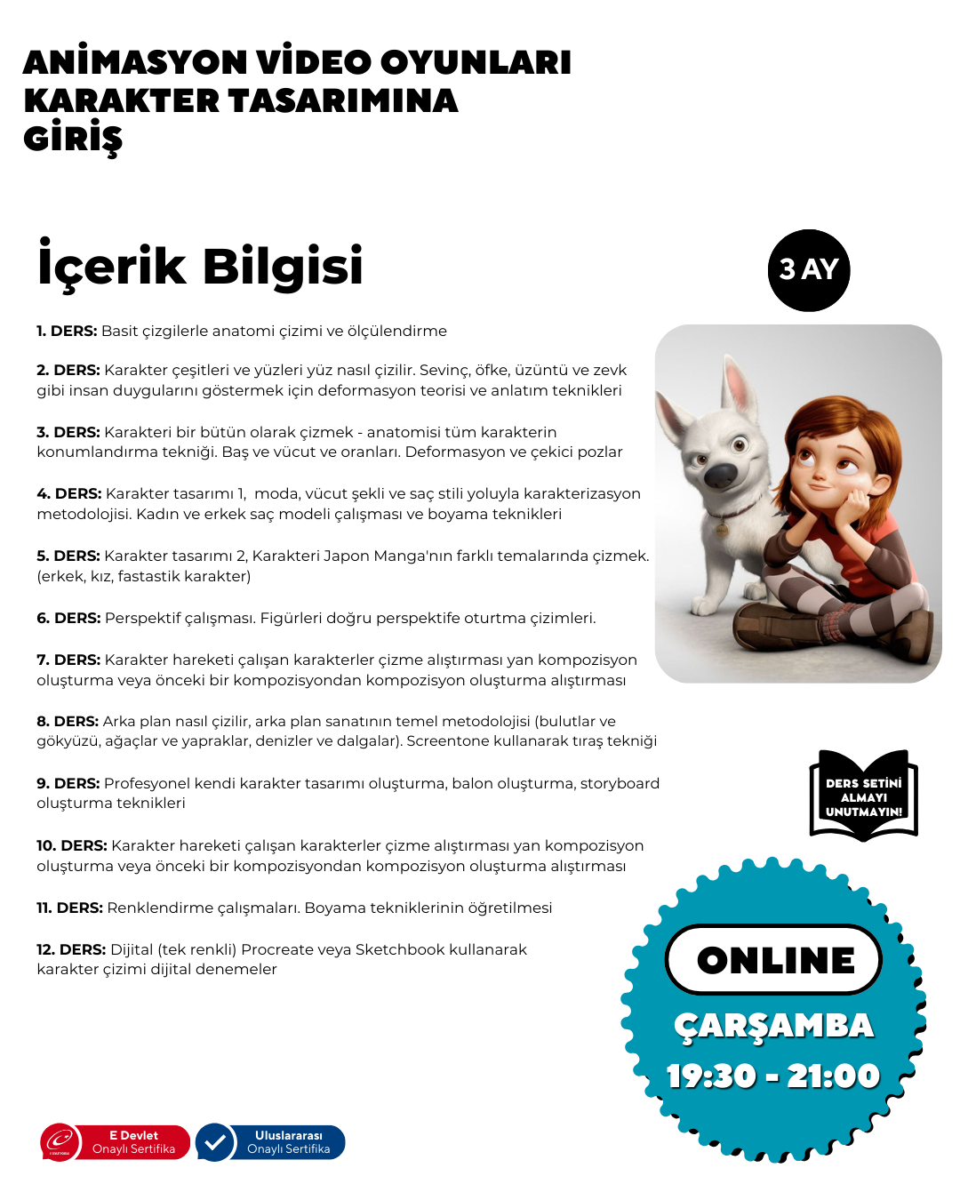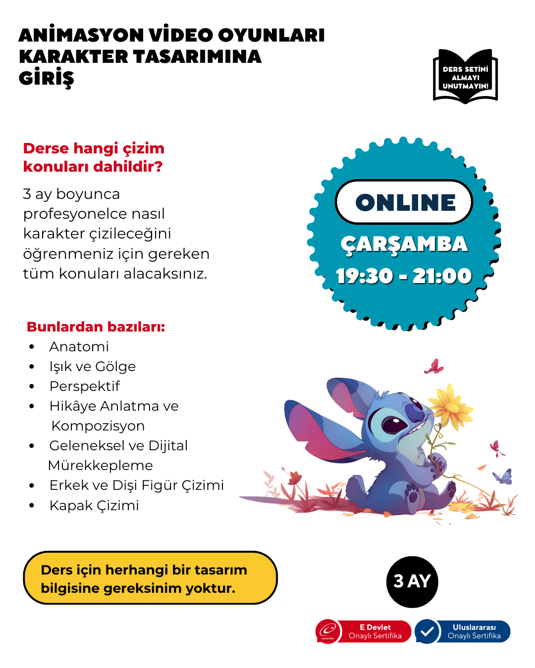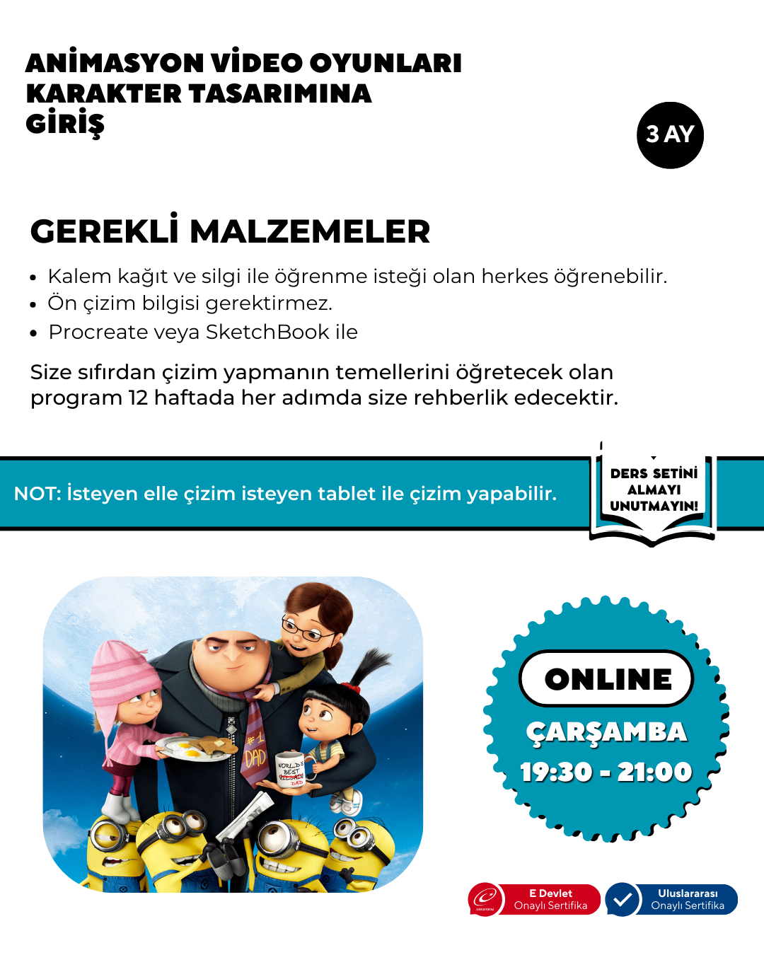 3 Ay Boyunca Programda profesyonelce nasıl karakter çizileceğini Öğrenmeniz için gereken tüm konuları alacaksınız.