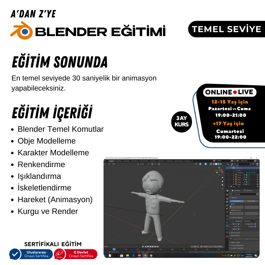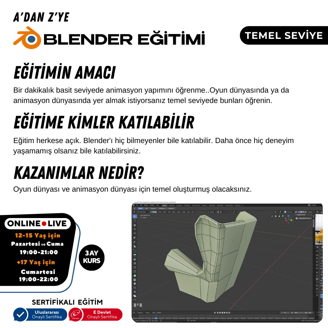 Blender ile Modelleme Eğitimi 3 Aylık - E-Devlet Onaylı Üniversite Eğitim Sertifikası - 12-15 Yaş