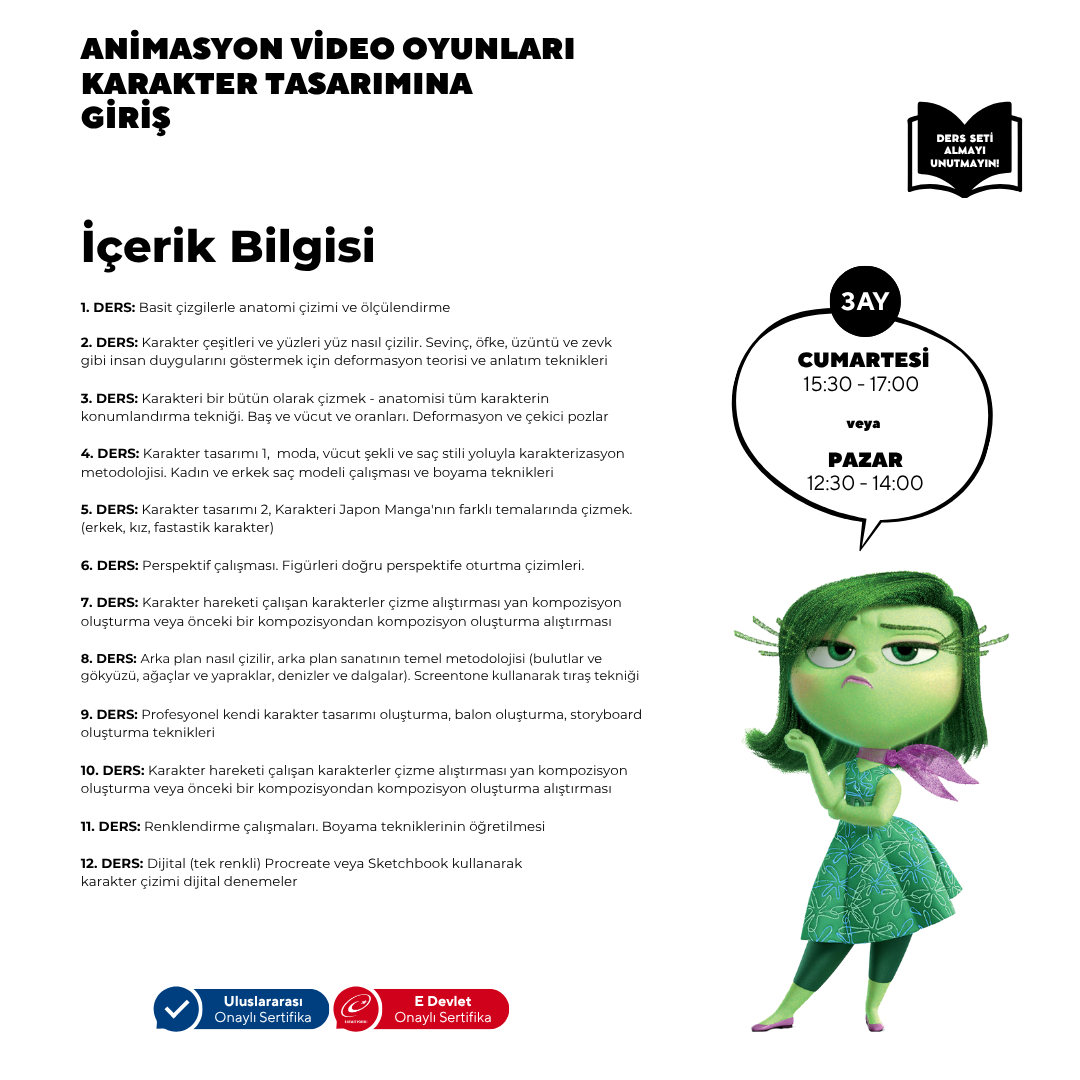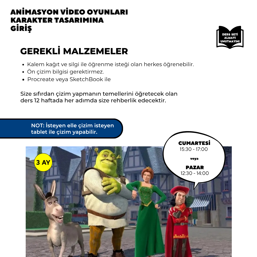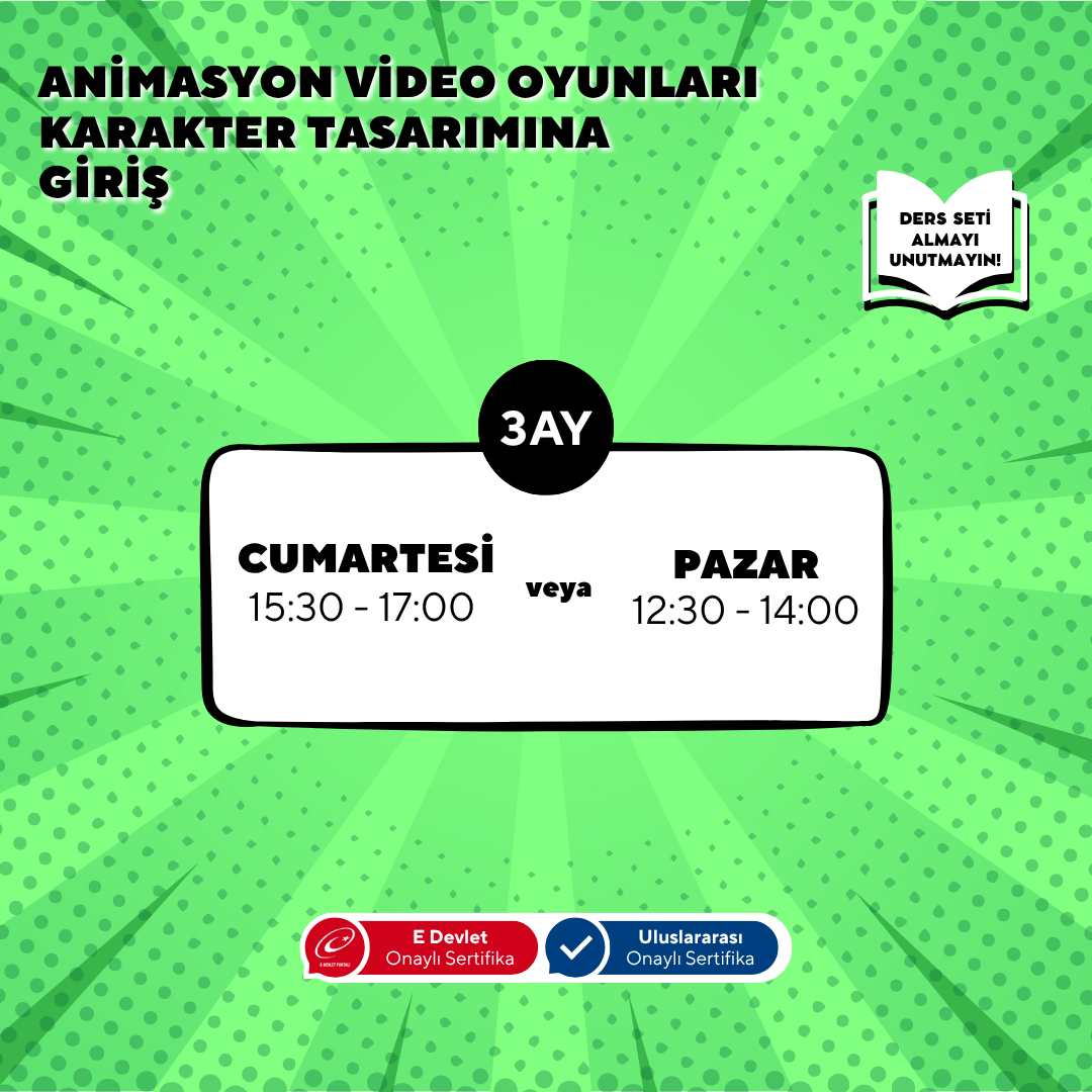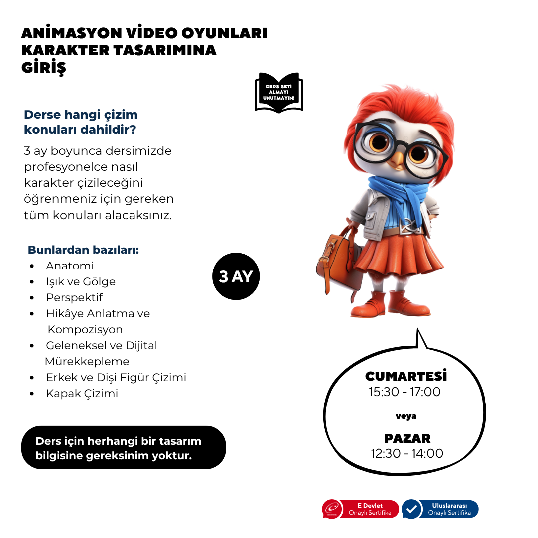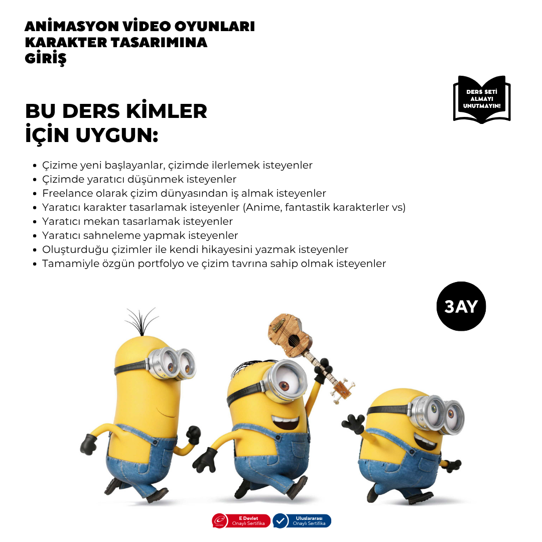 3 Ay Boyunca dersimizde profesyonelce nasıl karakter çizileceğini Öğrenmeniz için gereken tüm konuları alacaksınız.